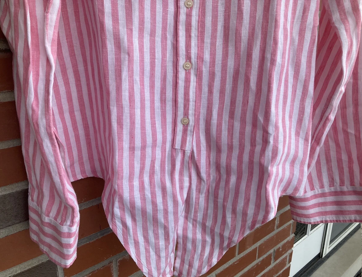 J Crew Pink White Linen Striped Self Tie Blouse Size 12 Ebay